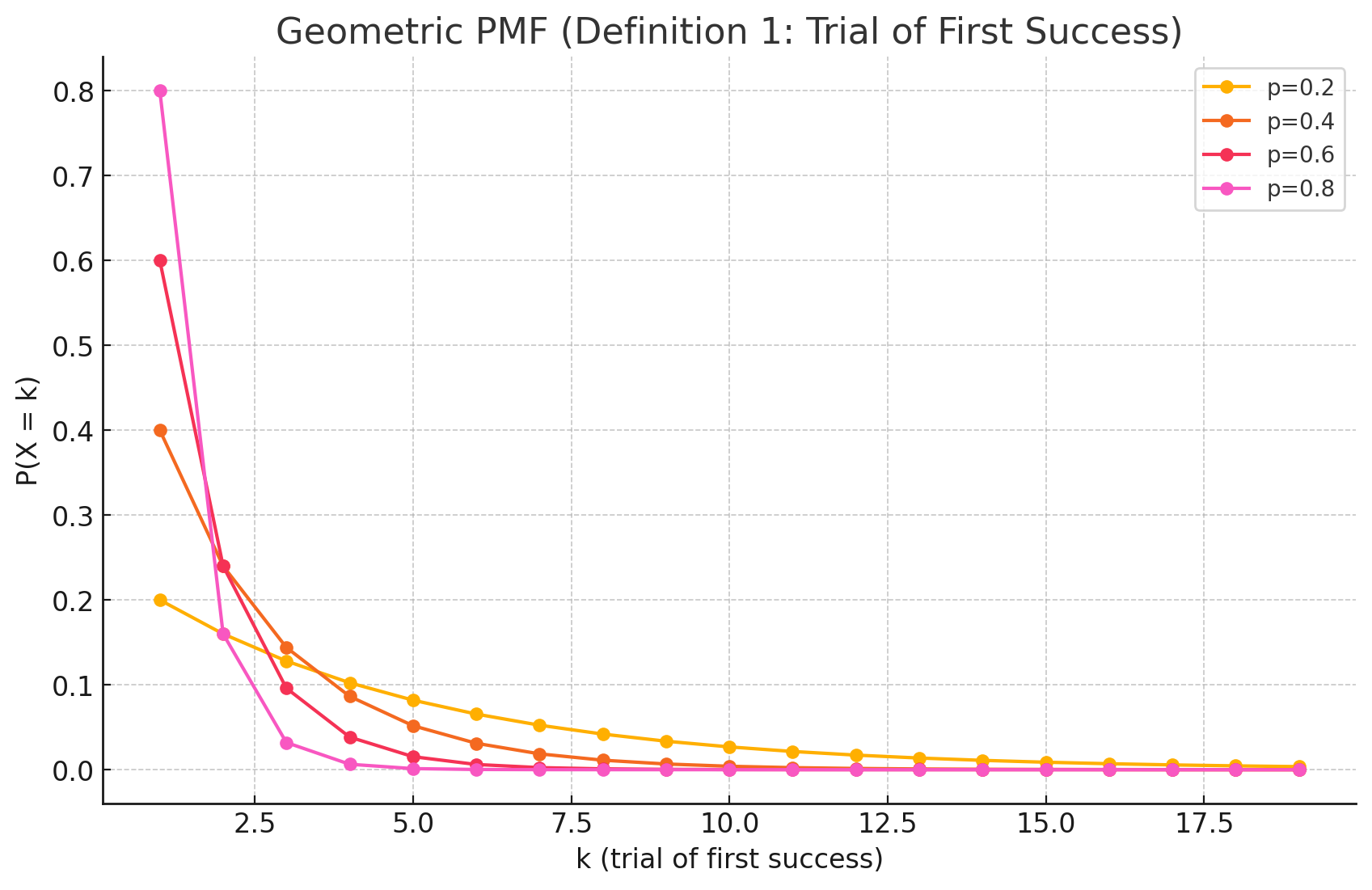 Always check which definition is being used, specifically if you are using software libraries (e.g., Python’s scipy.stats.geom uses the first definition, starting at $k=1$).