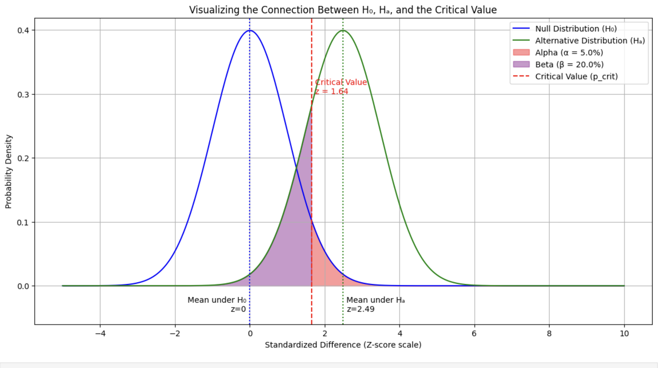 Formulation: The critical value is defined from the perspective of the null hypothesis ($H_0$) and the alternative hypothesis ($H_a$). We’re using a one-tailed test here.